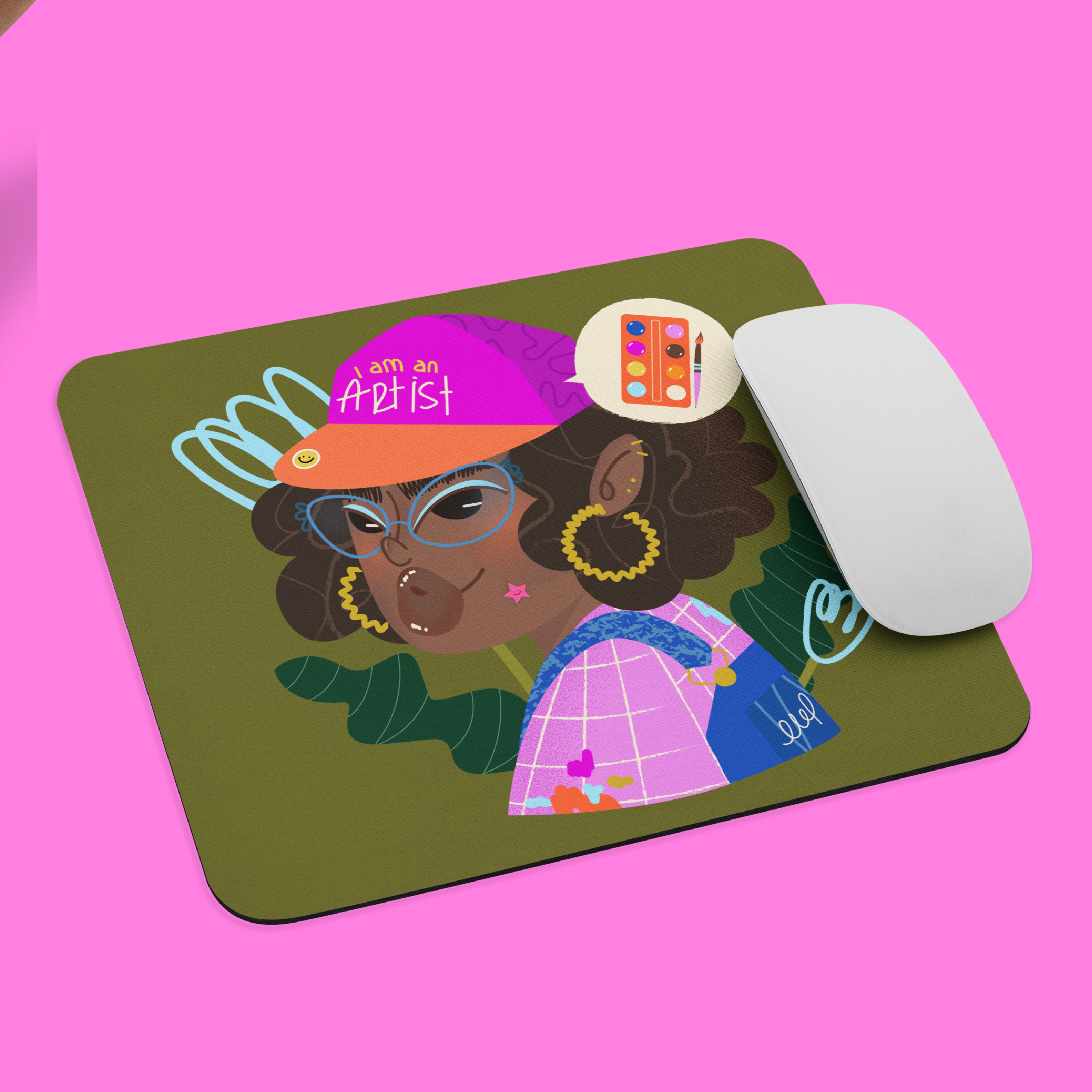 Este mouse pad tiene un diseño inspirado en la frase que celebro cada día, I AM AN ARTIST